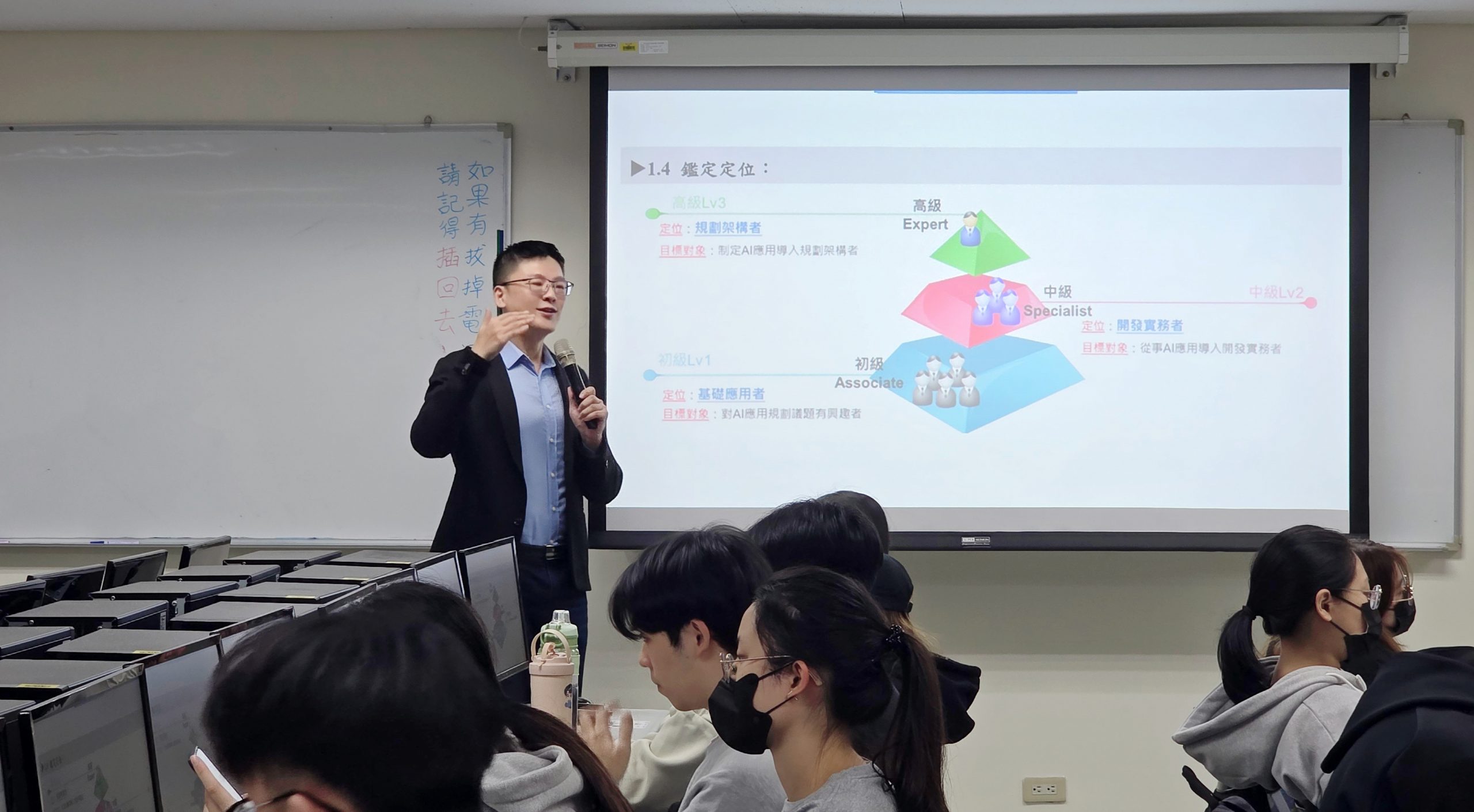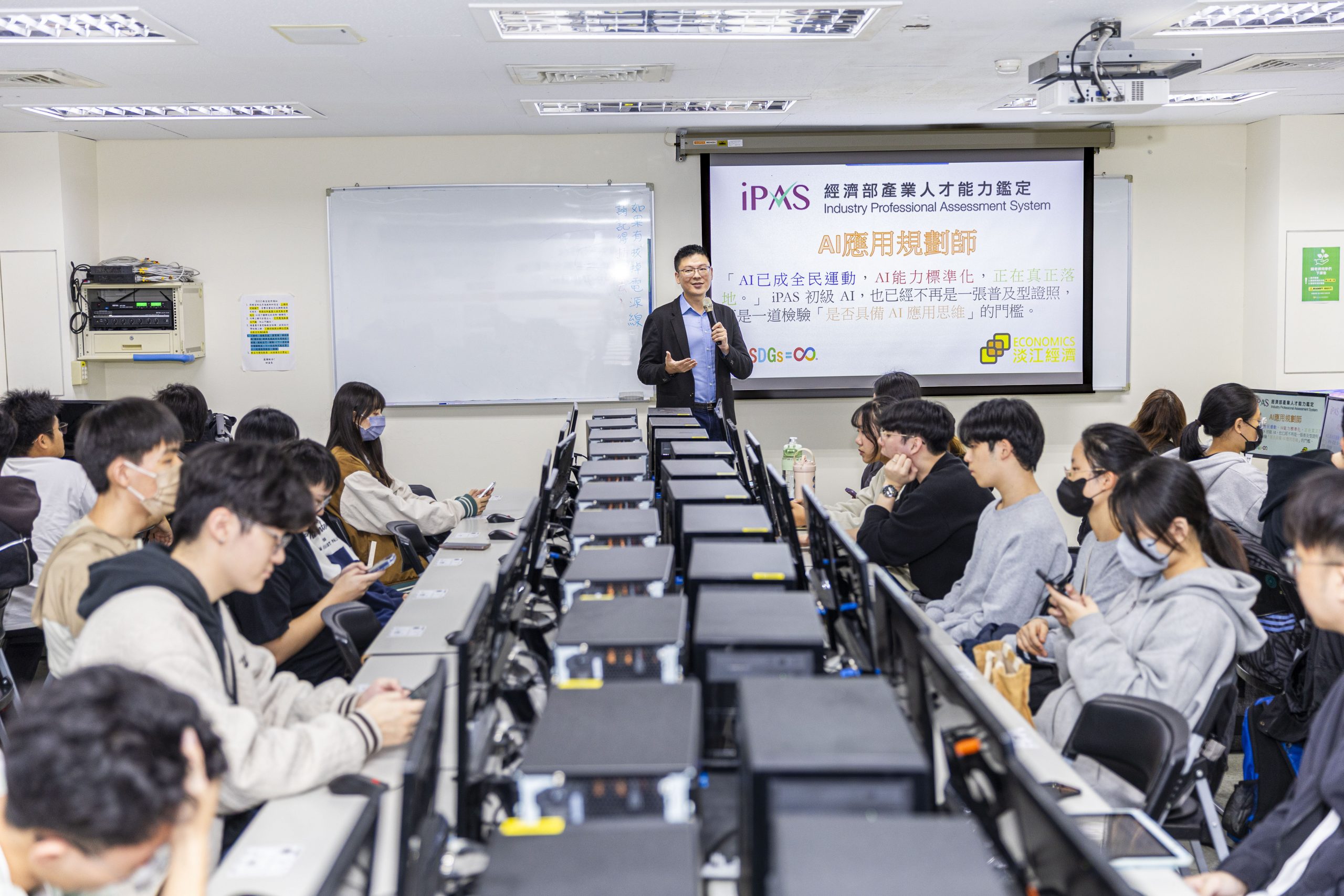 淡江大學經濟學系積極推動「AI多元化證照輔導班」,由助理教授林朕陞結合所授AI數據分析課程(智慧應用經濟學、AI數據的經濟應用),親自帶領學生考取TQC人工智慧應用與技術證照(專業級),為AI履歷加分,為職場提前布局。本學期結業式暨證照考試於114年12月1日舉行,共有45人到考,37人通過,通過率高達82.2%。課程吸引了來自商管、文、理、工等多個學院的學生,其中78% 考生來自商管學院,顯示AI已成為商管學生的核心戰力。值得一提的是,本次輔導首次有9名大一新生報名,通過率達100%,展現淡江新生提前佈局AI能力的決心與企圖心。