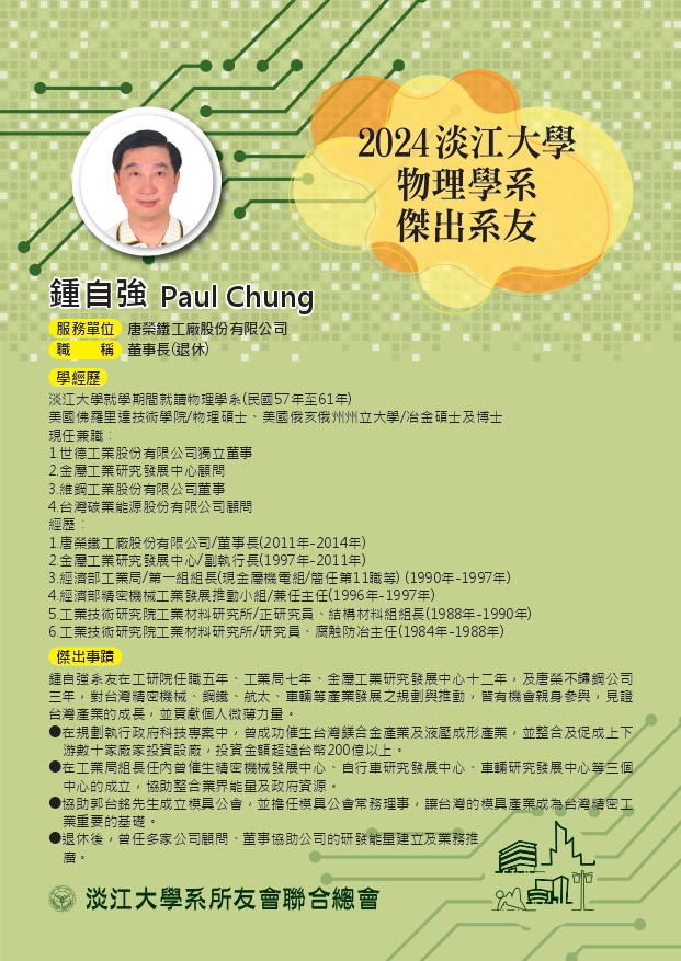 現職:唐榮鐵工廠股份有限公司 董事長(退休)